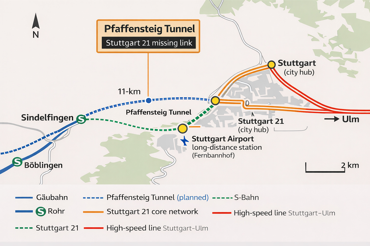 In the government’s description, Pfaffensteig is intended to enable the remaining capacity and network effects around the Stuttgart hub once the final set of connections is in place.