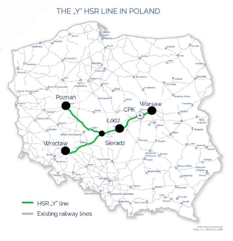 The Y-line forms the rail backbone of Poland’s CPK infrastructure programme, connecting the country’s major economic centres on new dedicated track.