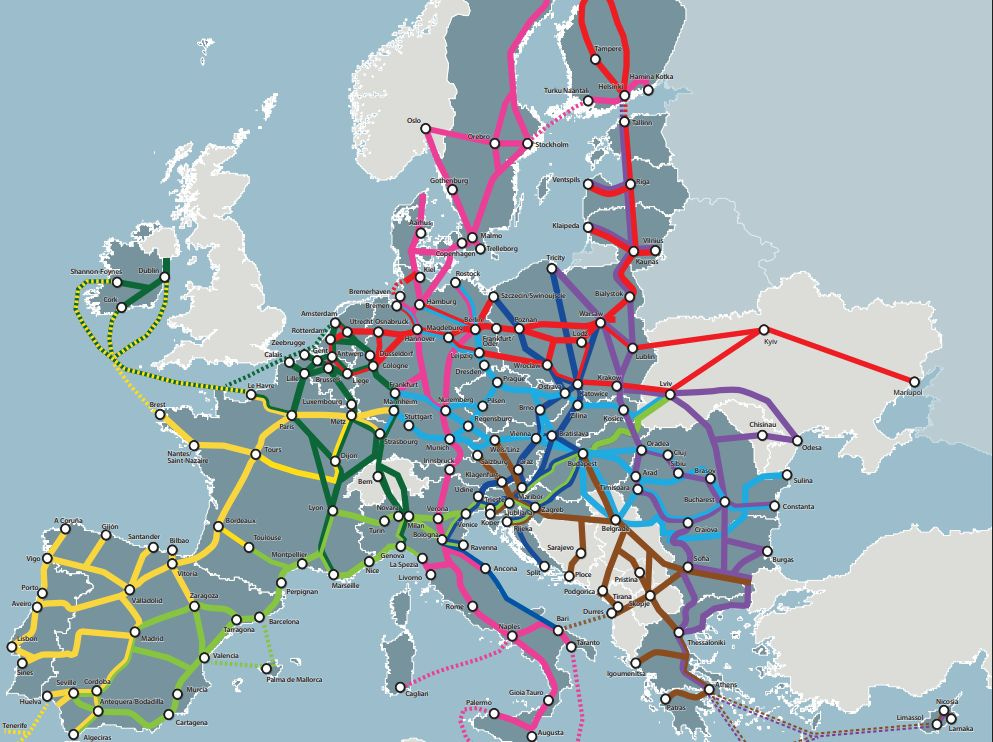 The nine corridors run across Europe from east to west and north to south, extending beyond EU borders to connect with neighbouring countries.